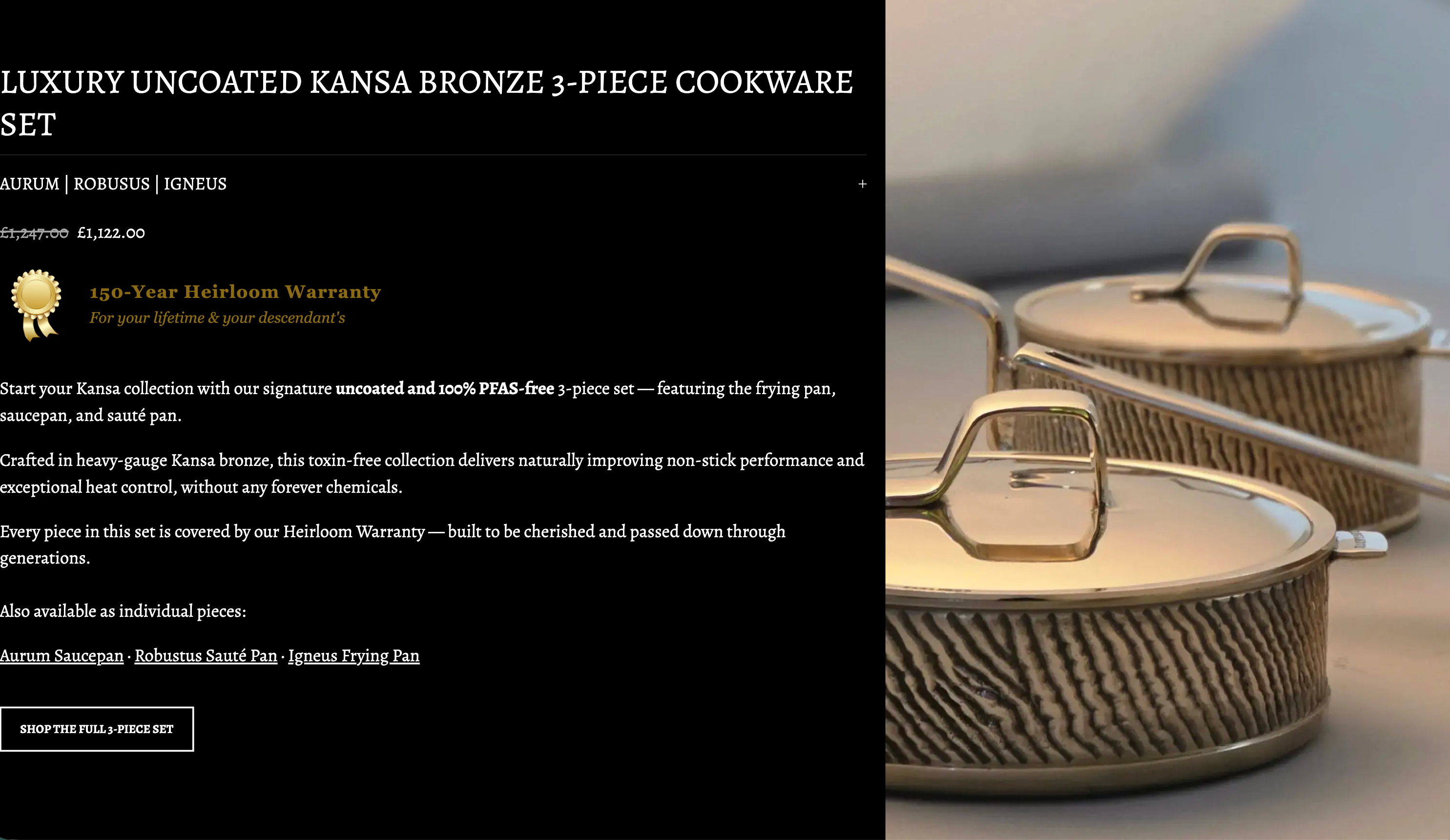 At Eaglador, our journey honours metallurgy, craftsmanship, and cooking. Inspired by Legatum Culinæ (‘The Legacy of the Kitchen’), we craft luxury heavy gauge PFAS-free uncoated Kansa bronze cookware — alkaline by nature and new to the Western Hemisphere — designed to promote digestion and gut health for generations in pursuit of true culinary wellness.